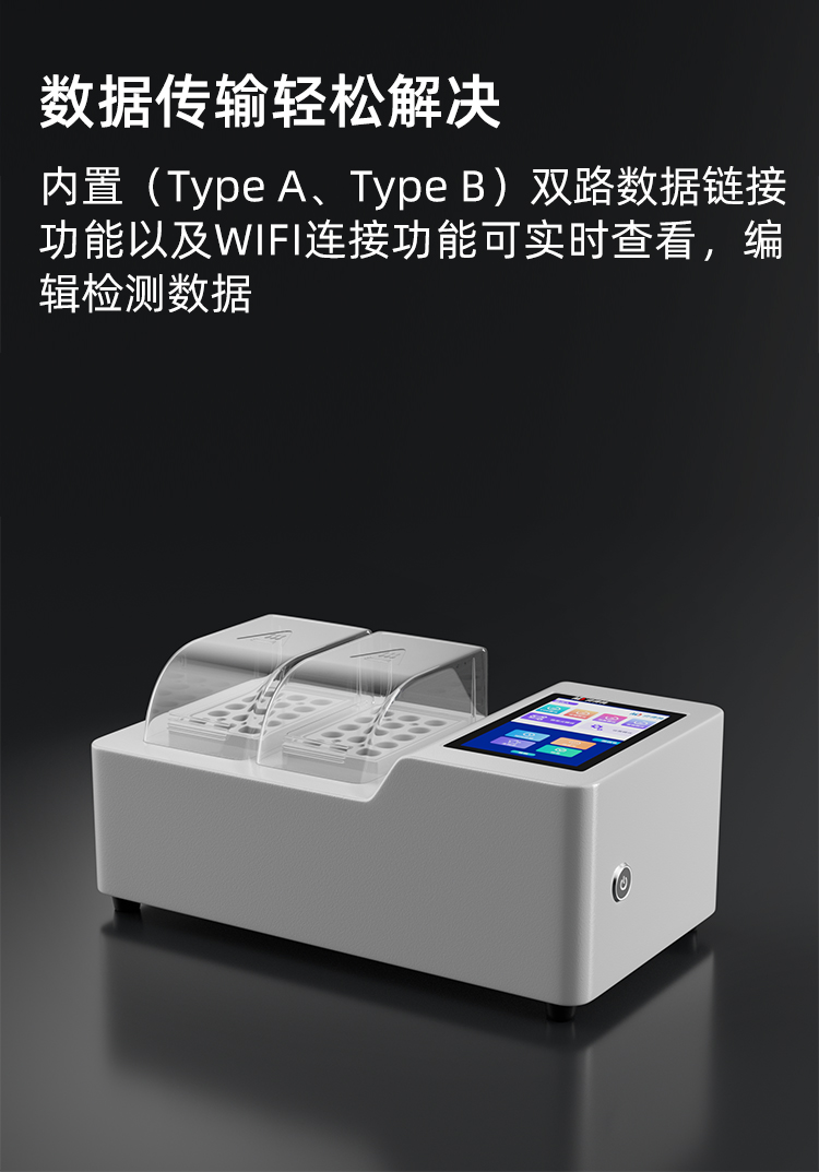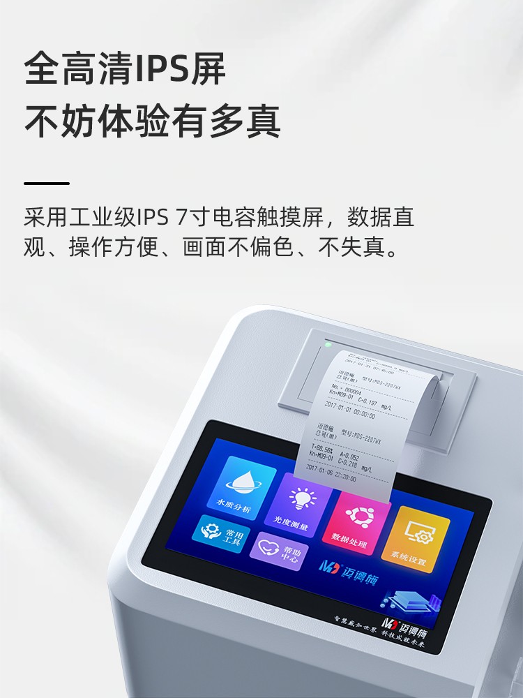 人工智能語音播報提示,可隨意調(diào)節(jié)音量, 使用更方便更 配備112種預(yù)先編程的曲線,曲線數(shù)量990條,可濃度直讀,測量結(jié)果更精密; 具有數(shù)據(jù)存儲功能,可存儲90萬組數(shù)據(jù),并能自由查看; 10寸彩色液晶顯示觸摸屏,全中文操作模式,更便于操作掌握; 儀器自備校準(zhǔn)功能,可根據(jù)標(biāo)準(zhǔn)樣品計算, 并存儲曲線,無需手動制作曲線; 配備USB接口傳輸功能,自帶打印機,可打印當(dāng)前數(shù)據(jù)及存儲的歷史數(shù)據(jù); 采用管比色、皿比色,雙比色系統(tǒng)